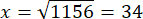 x2=256+900=1156
