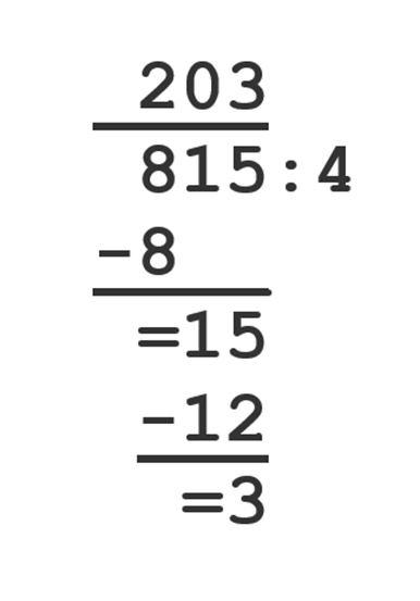 815 : 4 = 203 r 3