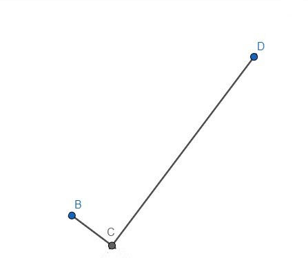Używając ekierki, dokończ rysunek tak, aby przedstawiał odcinki prostopadłe CB i CD.