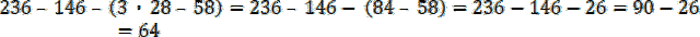 Wolne miejsca po południu: 236 – 146 – (3 ∙ 28 – 58)