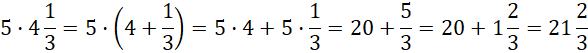 Wybierz wygodniejszy dla ciebie sposób: zapisz liczbę mieszaną jako sumę liczby naturalnej i ułamka, a następnie mnóż każdy z tych składników przez drugi czynnik i dodaj do siebie wyniki lub zamień liczbę mieszaną na ułamek niewłaściwy (pomnóż liczbę całości przez liczbę z mianownika i otrzymany wynik dodaj do liczby z licznika) i mnóż licznik otrzymanego ułamka przez liczbę naturalną. Wyłącz całości z ułamków i pozostaw wynik w postaci nieskracalnej.