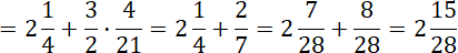 Pamiętaj o kolejności wykonywania działań: najpierw wykonaj działanie w nawiasie, po nim wykonaj dzielenie, a na koniec – dodawanie. Przed dodaniem do siebie liczb, sprowadź je do wspólnego mianownika. Następnie zapisz liczby mieszane jako ułamki niewłaściwe, a dzielenie zastąp mnożeniem przez odwrotność dzielnika. Na koniec sprowadź do wspólnego mianownika składniki i dodaj je do siebie.