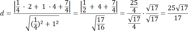 . Skorzystaj ze wzoru na odległość punktu C(x0, y0) od prostej o równaniu ogólnym: Ax + By + C = 0, który wyraża się za pomocą wzoru: