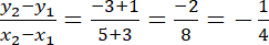 Wyznaczamy współczynnik kierunkowy prostej AB: