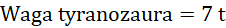 Sprawdź w tabelach wagę płetwala i wagę tyranozaura. Możesz zauważyć, że płetwal jest cięższy od tyranozaura. Podziel wagę płetwala błękitnego przez wagę dinozaura, aby dowiedzieć się, ile razy jest od niego cięższy.