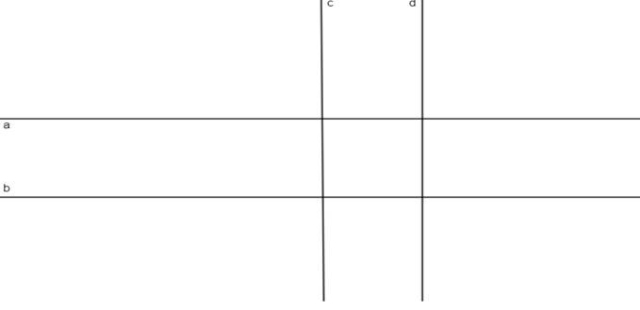 Narysuj proste równoległe a i b oraz prostą c, która jest prostopadła do b i prostą d, która jest równoległa do c. Napisz, jak położone są względem siebie b i d?