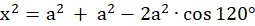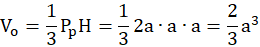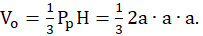 Objętość ostrosłupa o podstawie kwadratu, która jest krótszą przekątną sześciokąta oraz wysokości a. Krótsza przekątna sześciokąta x jest obliczana jako podstawa trójkąta równoramiennego o kącie między ramionami równym