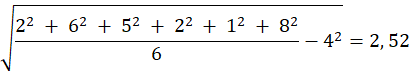 Oblicz średnią arytmetyczną jako średnią wszystkich liczb oraz odchylenie standardowe za pomocą wzoru: