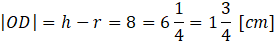 Długość szukanego odcinka |OD| jest równa różnicy wysokości trójkąta i promienia okręgu.