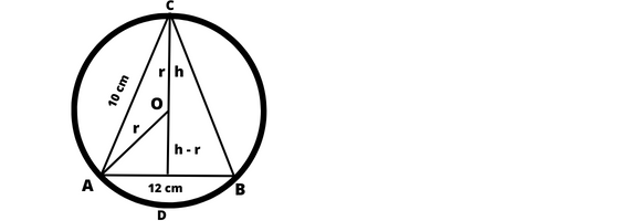 Następnie ułóż twierdzenie Pitagorasa dla trójkąta ADC, dzięki któremu możesz obliczyć długość wysokości trójkąta. Ułóż kolejne twierdzenie Pitagorasa – tym razem dla trójkąta ADO – jego przeciwprostokątna równa jest promieniowi okręgu, a przyprostokątna OD różnicy wysokości trójkąta i promienia okręgu. Z otrzymanego równania wyznacz długość promienia opisanego na trójkącie.