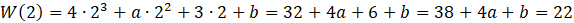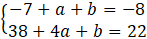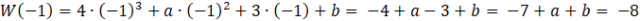 Aby rozwiązać zadanie zapisz wartości wielomianu dla -1 i 2, a następnie porównaj je z wartościami podanymi w treści. Z otrzymanych równań liniowych utwórz układ, który rozwiąż metodą podstawiania. Rozwiązaniami układu są szukane wartości współczynników.
