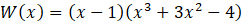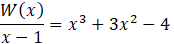 Zauważ, że x = 1 jest pierwiastkiem wielomianu W(x), a więc wielomian jest podzielny przez dwumian x – 1. Wykonaj dzielenie za pomocą schematu Hornera, a następnie przedstaw wielomian w postaci iloczynu. Czynnik