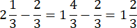 W tym zadaniu musisz odjąć od siebie dwa ułamki. Na początku musisz zapisać liczby mieszane, zwiększając ułamek przy jednoczesnym obniżeniu wartości liczby całkowitej. Następnie musisz odjąć od siebie dwie wartości — jeśli mają one takie same mianowniki, wówczas odejmuje się od siebie liczniku obydwu wyrażeń, w przypadku gdy odejmujemy od siebie liczby mieszane, wtedy odejmujemy od siebie liczby całkowite oraz ułamki (również od siebie).