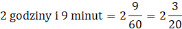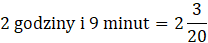Musisz przedstawić 2 godziny i 9 minut w postaci liczby mieszanej.