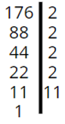 176 = 2 ∙ 2 ∙ 2 ∙ 2 ∙ 11
