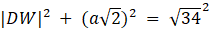 Skorzystaj z twierdzenia Pitagorasa i układu równań. Oznacz krawędź podstawy ostrosłupa jako a. Pomnóż pierwsze równanie przez 2, odejmij stronami i oblicz długość odcinka |DW|: