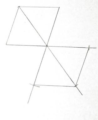 Narysuj romb i wybierz wierzchołek, względem którego figury będą symetryczne. Dla każdego z wierzchołków narysuj proste przechodzące przez ten wierzchołek i wierzchołek, względem którego romb będzie symetryczny. Na każdej z prostych odmierz odległość, jaką tworzą zaznaczone na niej wierzchołki i zakreśl łuk o takim promieniu tak, by wierzchołek, względem którego figury będą symetryczne znajdował się pośrodku pozostałych. Połącz otrzymane punkty w romb.