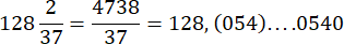 W tym zadaniu musisz wypisać pewną część ułamkową ułamka zwykłego. W tym celu musisz poznać jego okresowość i na tej podstawie będziesz w stanie wskazać te cyfry. Okresowość jest spowodowana tym, że podany ułamek nie posiada skończonego zakończenia (dzieli się zresztą). Ponadto wynika, że w trakcie dzielenia, w części ułamkowej występuje to samo wyrażenie „054” – na tej podstawie możesz określić jaki liczby znajdują się na pięćsetnych pozycjach.
