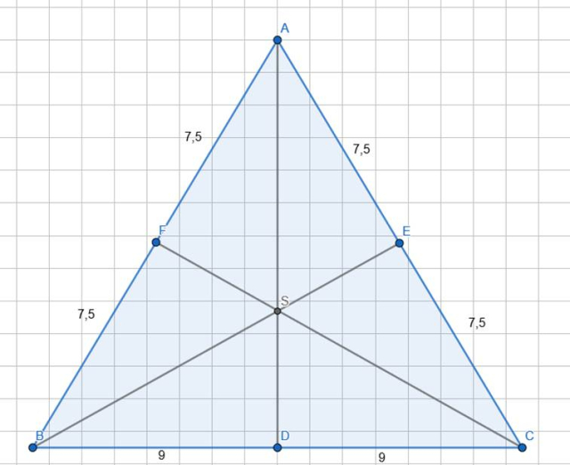(punkt przecięć środkowych dzieli je w stosunku 2:1). Zatem mamy trójkąt prostokątny CDS, więc możesz skorzystać z twierdzenia Pitagorasa.
