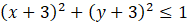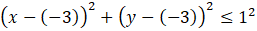 Małe koło ma środek w punkcie (-3, -3) a jego promień wynosi 1. Analogicznie jak wcześnie podstawiasz te informacje do podanej nierówności.