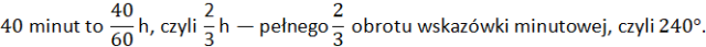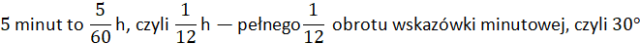 Ustal kąt, o jaki przemieści się wskazówka minutowa w czasie: