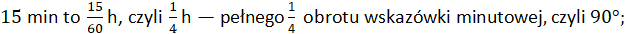 Godzina (60 minut) to jeden pełny obrót wskazówki minutowej zegara (o 360°)