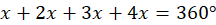 Suma miar kątów wewnętrznych w czworokącie wynosi 360°. Zatem przyrównaj sumę podanych kątów do 360° i rozwiąż otrzymane równanie:
