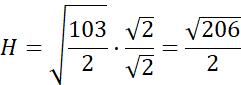 Trójkąt, do którego należy H, ma przyprostokątne H oraz połowę przekątnej kwadratu. Przekątna kwadratu to