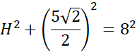 Wyznacz wysokość ostrosłupa H. Skorzystaj z twierdzenia Pitagorasa a2 + b2 = c2, gdzie a i b to długości przyprostokątnych, a c to przeciwprostokątna trójkąta prostokątnego.