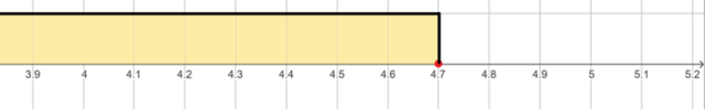 Kropka musi być zamalowana, zbiór znajduje się na lewo od 4,7.