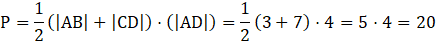 Współrzędne trapezu: A(0, 0), B(7, 0), C(3, 4), D(0,4).