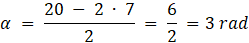 Szukaną w zadaniu miarę łukową kąta możesz wyznaczyć z powyższego wzoru, podstawiając odpowiednie dane: