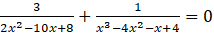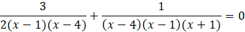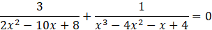 Doprowadź ułamki do jednakowych mianowników, rozwiąż równanie i sprawdź, czy wyniki należą do dziedziny: