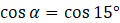 Dane jest wyrażenie cos α = cos 15°. Podaj wartości α, dla których jest ono prawdziwe.