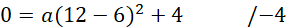 Zauważ, że jednym z miejsc zerowych tego równania będzie punkt (12, 0). Podstaw współrzędne tego punktu do wyprowadzonego równania i oblicz współczynnik a.