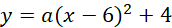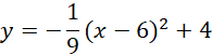 Jeśli punkt A jest początkiem układu współrzędnych to wierzchołek paraboli znajduję się w punkcie (6,4). Zatem p=6, q=4. Zapisz równanie tej paraboli w postaci kanonicznej.