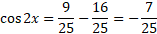 Skorzystaj ze wzorów na sinus i cosinus podwojonego kąta. Użyj jedynki trygonometrycznej do obliczenia cosinus. Zauważ, że cosinus w drugiej ćwiartce jest ujemny.