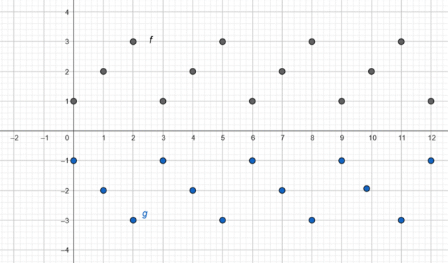 , czyli resztę z dzielenia przez 3 powiększoną o 1. Pary liczb z każdej kolumny, czyli powstałe punkty zaznacz w układzie współrzędnych, aby narysować wykres funkcji