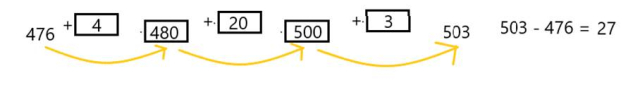 Uzupełnij okienka tak, aby obliczenia się zgadzały. Wynik odejmowania będzie sumą liczb zapisanych w okienkach.