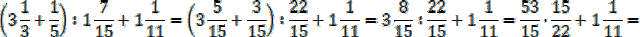 Pamiętaj o kolejności wykonywania działań: najpierw wykonaj działanie w nawiasie, po nim wykonaj dzielenie, a na koniec – dodawanie. Przed dodaniem do siebie liczb, sprowadź je do wspólnego mianownika. Następnie zapisz liczby mieszane jako ułamki niewłaściwe, a dzielenie zastąp mnożeniem przez odwrotność dzielnika. Na koniec sprowadź do wspólnego mianownika składniki i dodaj je do siebie. Skróć otrzymany ułamek i wyłącz całości.