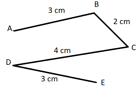 W tym zadaniu musisz narysować otwartą łamaną zbudowaną z 4 podanych odcinków: AB = 3 cm, BC = 2 cm, CD = 4 cm, DE = 3 cm.