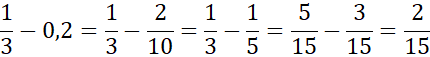Tutaj musisz zamienić ułamek dziesiętny na ułamek zwykły. Będzie one miał w mianowniku potęgę liczby 10. Część całkowita pozostaje bez zmian. Sprowadź do wspólnego mianownika i wykonaj odejmowanie. Mianownik pozostaje bez zmian, odejmij licznik od licznika.