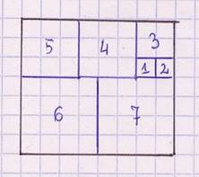 Podaną figurę narysuj w zeszycie. Następnie pomyśl w jaki sposób ją podzielić, aby otrzymać 7 kwadratów.