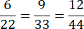 Gdy pierwszy ułamek pomnożymy w liczniku i mianowniku najpierw przez 2 potem 3 i 4, otrzymamy trzy równe ułamki: