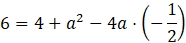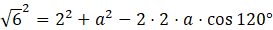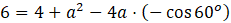Obliczam a, korzystając z twierdzenia cosinusów: