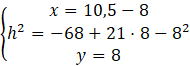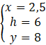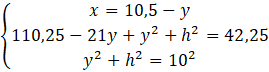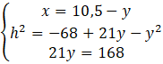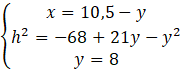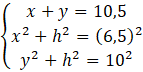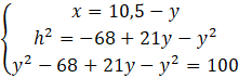Rozwiąż układ równań z trzema równaniami, w których jest zawarta zależność między odcinkami x, y i h. Rozwiąż ten układ równań i podaj wysokość trapezu.