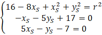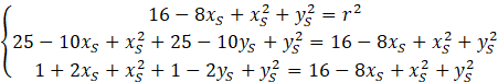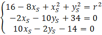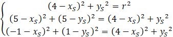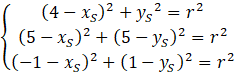 Równanie kanoniczne okręgu to . Rozwiąż układ równań z trzema równaniami, które powstają poprzez podstawienie współrzędnych punktów do równania wyżej. Na końcu, aby wyznaczyć równanie okręgu to do danego równania podstaw obliczone wartości.