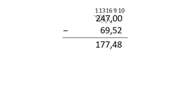W tym zadaniu musisz obliczyć sposobem pisemnym różnicę liczb 247 i 69,52.