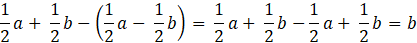 W tym zadaniu musisz zapisać działanie „Od połowy sumy liczb a i b odejmij połowę ich różnicy”., następnie zredukować wyrazy podobne.