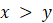 Liczby x oraz y mają te same podstawy, będące liczbami większymi od 1, w związku z czym liczba o większym wykładniku jest większa: